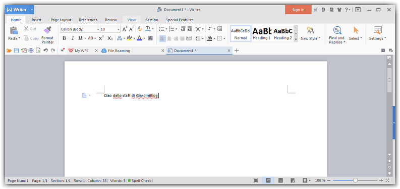 Oltre ad avere in sé la maggior parte delle funzionalità di Word, come puoi vedere dall’immagine in basso WPS Office Writer è anche graficamente molto simile al programma di casa Microsoft.