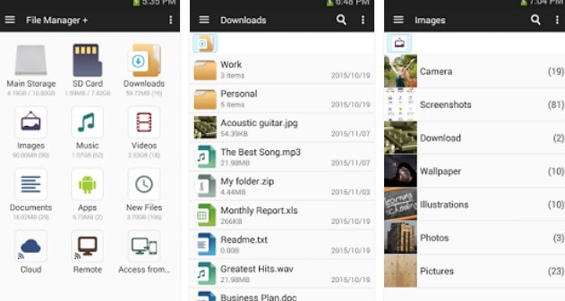 Una volta installata sarà sufficiente aprirla per beneficiare dei menu suddivisi per tipo di file (davvero molto comodi), oppure utilizzare le voci Main Storage e SD Card per accedere rispettivamente alla memoria interna e all’eventuale microSD presente nel dispositivo.
