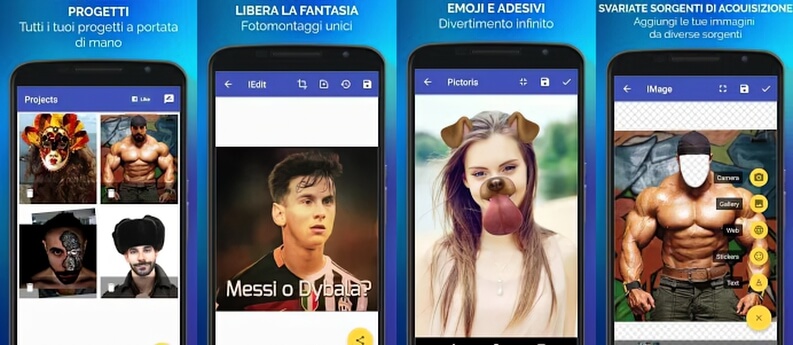 Si tratta di un’ottima app di fotoritocco, che però fra le molte opzioni ne offre alcune molto interessanti di fotomontaggio.