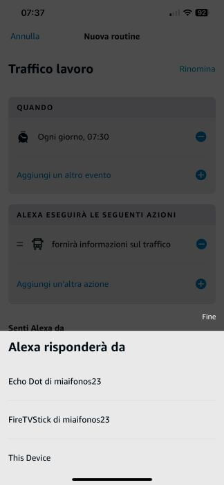 Prima dell’ultimo passaggio, nella schermata “Nuova routine” dell’app Alexa dovresti avere un quadro simile.