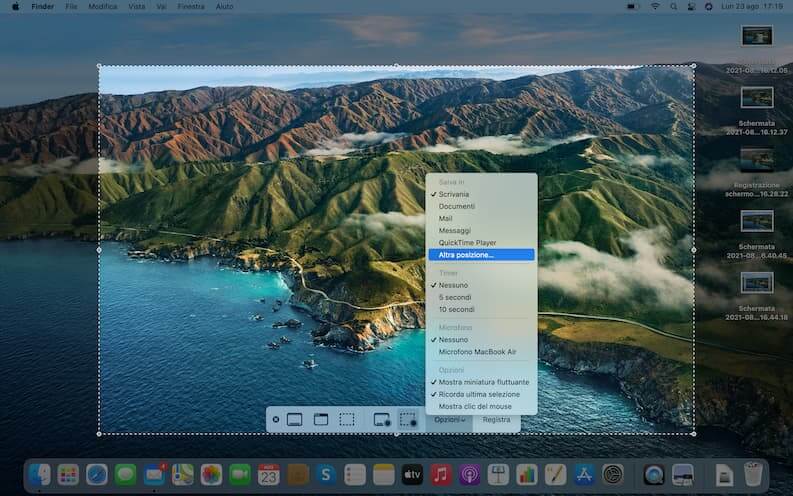 Di default, gli screenshot sono salvati su Scrivania. Volendo, però, è possibile scegliere un’altra destinazione di salvataggio, direttamente dall’app Istantanea Schermo prima di salvare l’immagine catturata.
