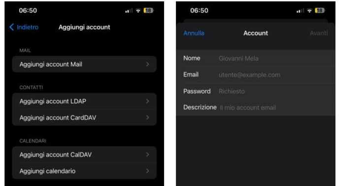 - email: inserisci l’indirizzo di posta elettronica da configurare