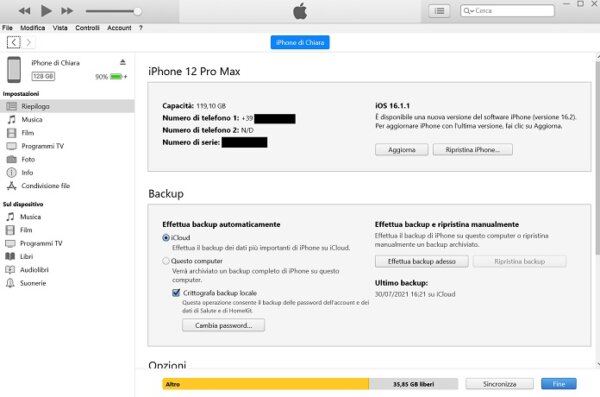 1. Collega l’iPhone al PC tramite il cavo Lightning