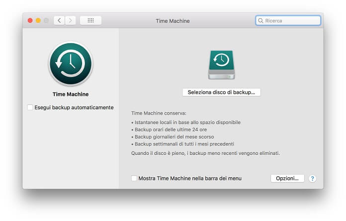 La procedura di inizializzazione riporta il Mac alle impostazioni originali di fabbrica e, di conseguenza, i dati in esso contenuti vengono cancellati. Ecco perché è importante prima di tutto eseguire un backup con Time Machine, l’app di sistema Apple che provvede a creare una copia di tutti i dati disponibili in modo da poterli poi recuperare in un secondo momento.