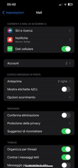 - Fai uno scroll verso il basso e seleziona “Mail”.