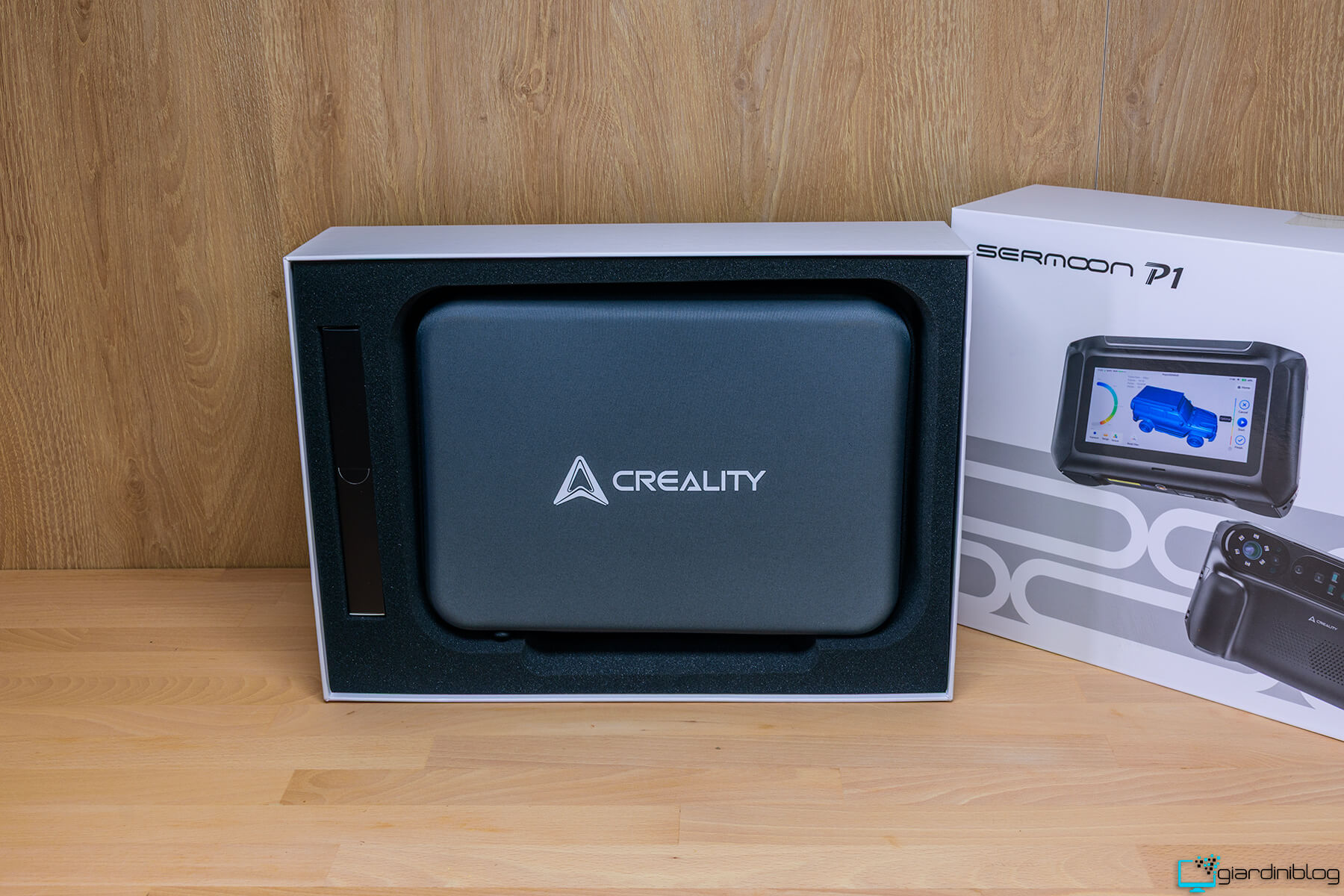 Partiamo subito dall’unboxing del Creality Sermoon P1, che lascia subito intuire il posizionamento professionale del dispositivo, dove troviamo una custodia semi-regida di ottima fattura in stile valigia, per proteggere il dispositivo in modo efficace durante il trasporto.