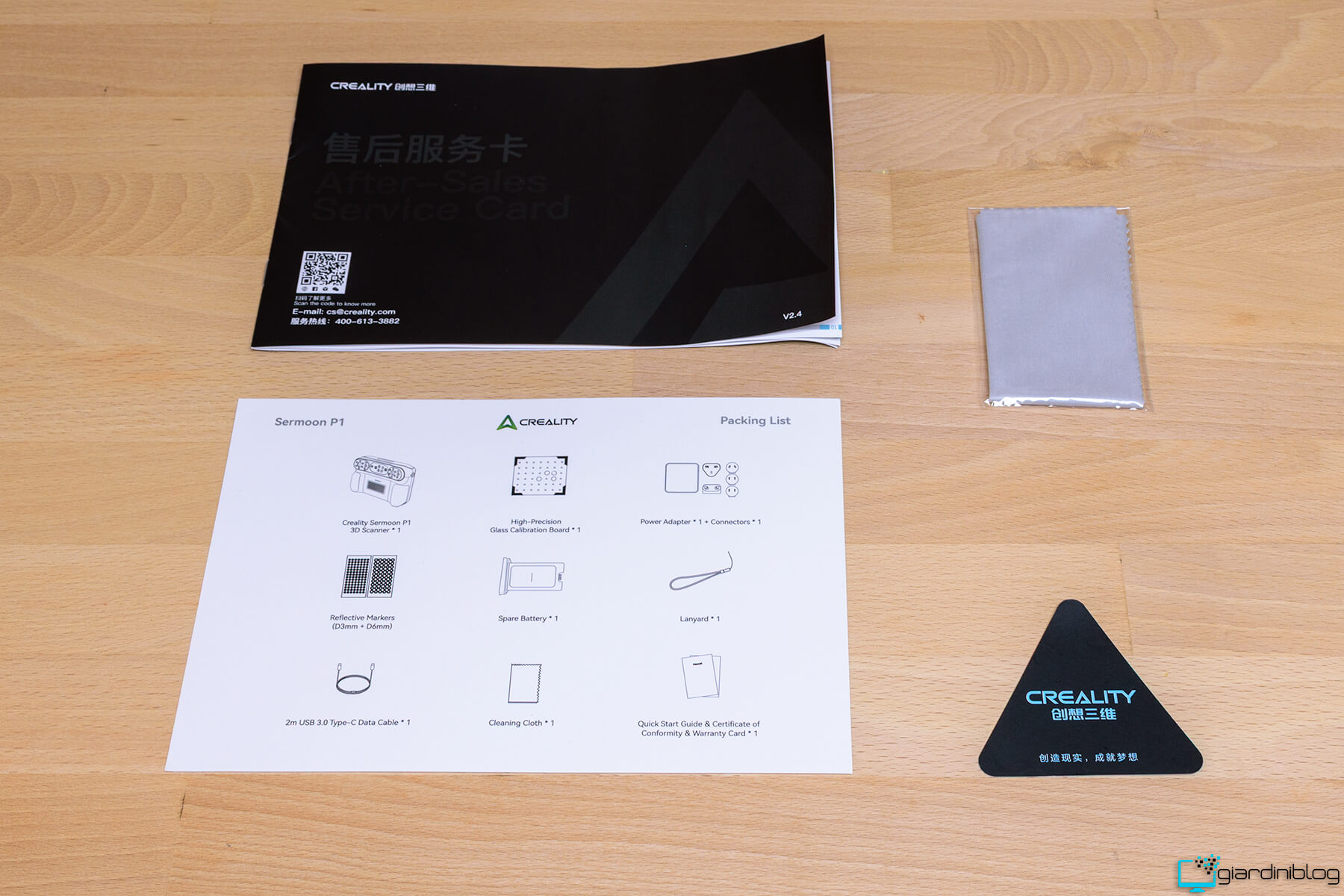 La dotazione si completa con alcuni accessori utili per l’utilizzo quotidiano, tra cui un panno pensato per la pulizia delle superfici ottiche, una cinghia che facilita il trasporto dello scanner 3D e una documentazione. Sono infatti presenti sia il manuale utente sia una guida rapida, utili per iniziare a utilizzare il dispositivo in modo immediato e senza difficoltà.
