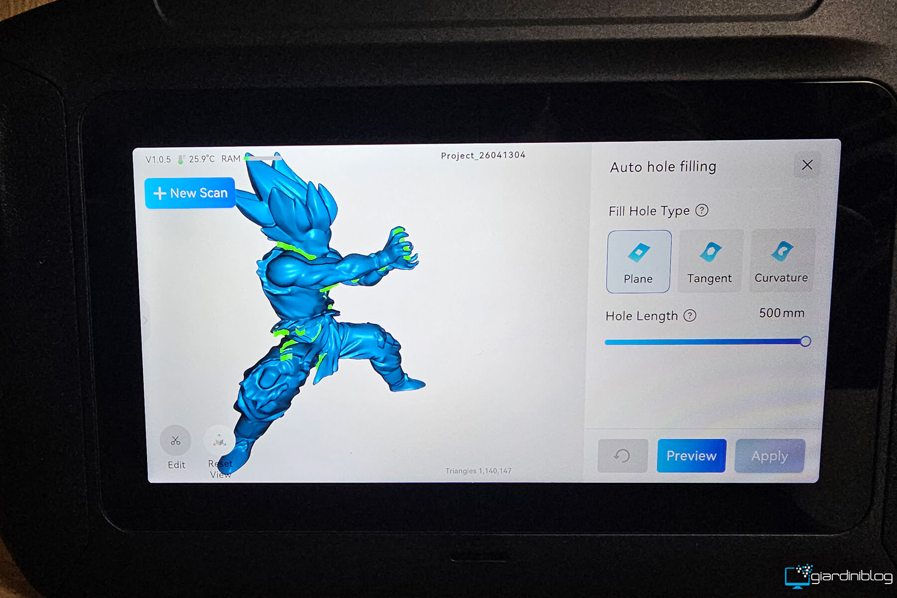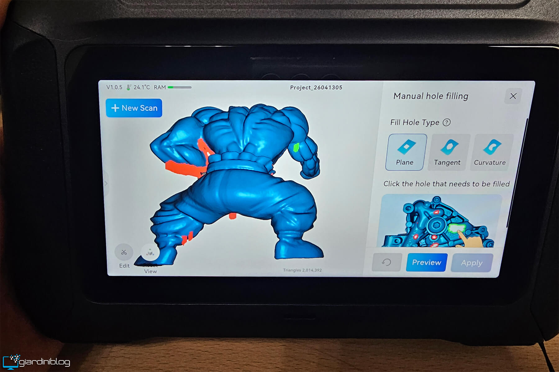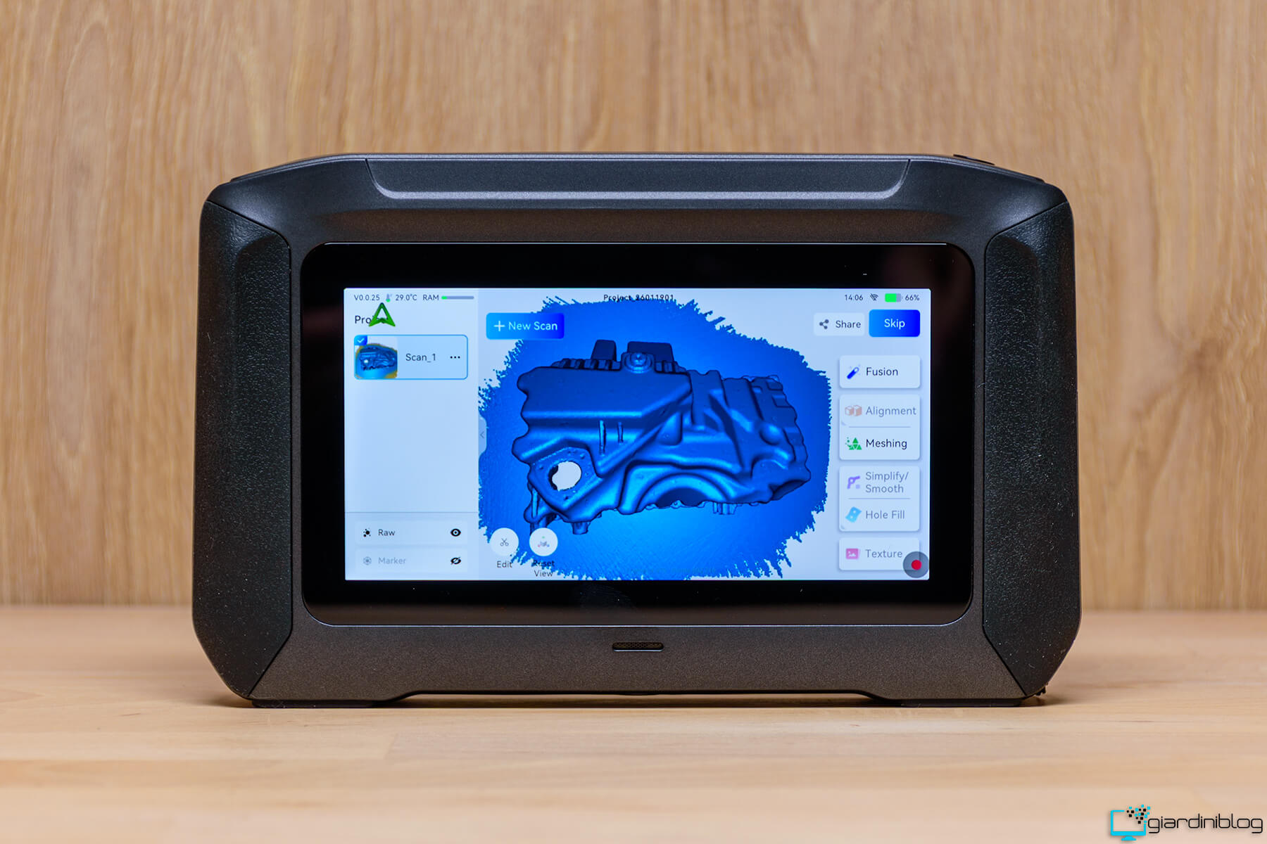 Uno degli aspetti più rilevanti è la presenza di strumenti di editing onboard sorprendentemente completi: il software integrato consente operazioni come allineamento automatico di più scansioni, isolamento di aree specifiche, pulizia del rumore e ottimizzazione della mesh direttamente sullo scanner. Questo è reso possibile dalla potenza di calcolo interna, che permette di eseguire operazioni che normalmente richiederebbero un PC performante, trasformando il P1 in una vera piattaforma di elaborazione mobile.