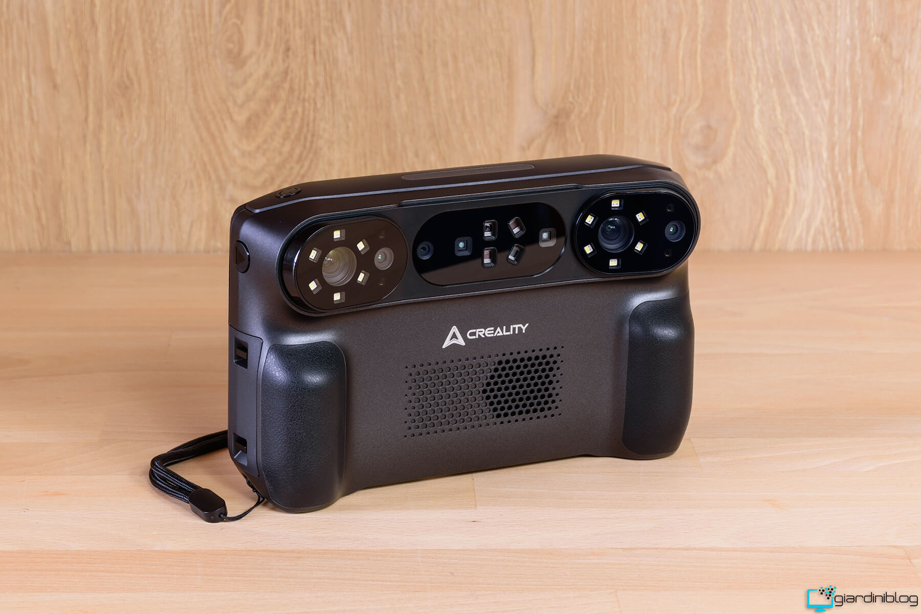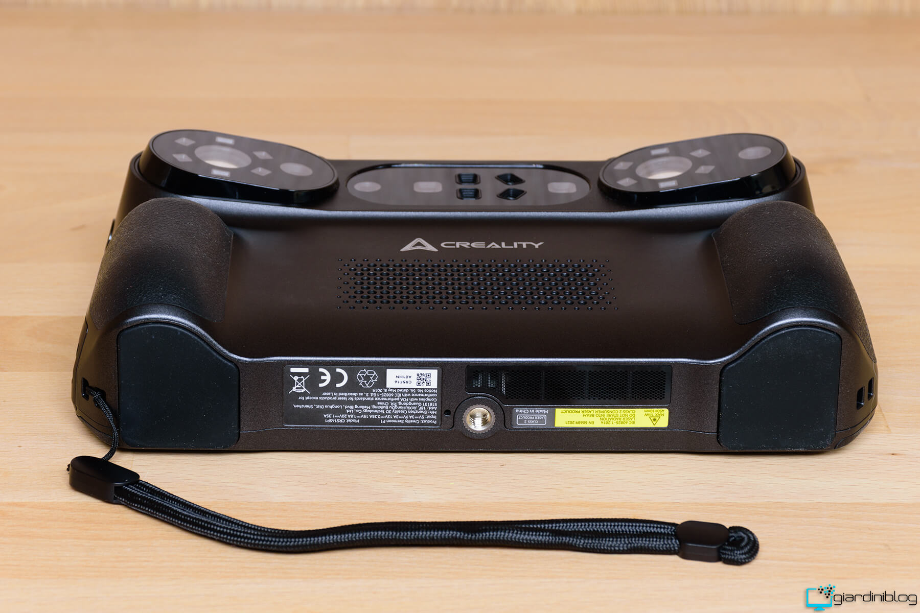 Tornando all’aspetto estetico e funzionale, a garantire una presa sicura di questo dispositivo troviamo sui lati comode ed ergonomiche impugnature in gomma antiscivolo e un laccetto di sicurezza.