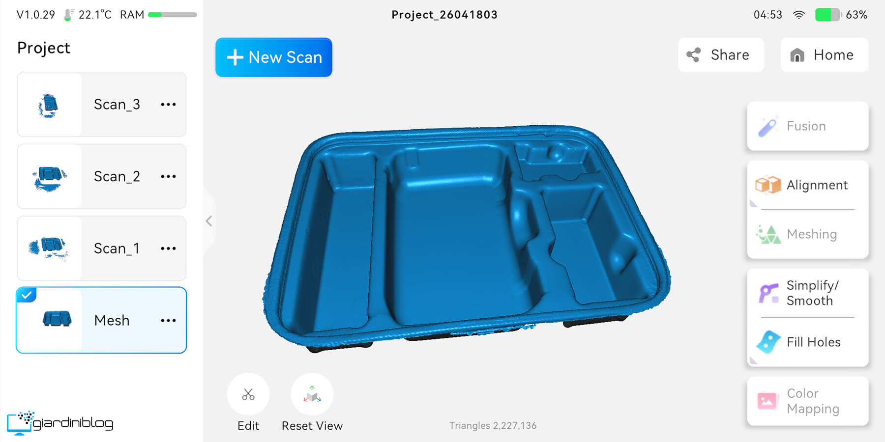 In questa recensione abbiamo constatato con mano, come sia possibile con questo scanner 3D, eliminare qualsiasi ostacolo nel processo di scansione. Durante i test, è stato possibile completare scansioni, modificarle e generare mesh direttamente sul dispositivo, senza mai passare da un computer, un aspetto che rappresenta uno dei principali punti di forza del Creality Sermoon P1.