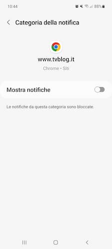 Non appena l’interruttore passerà da blu a grigio, leggerai sullo schermo la conferma che “le notifiche da questa applicazione sono bloccate”. Ciò significa che d’ora in avanti non ti arriveranno più gli avvisi di quando uno dei siti pubblicherà un nuovo contenuto.