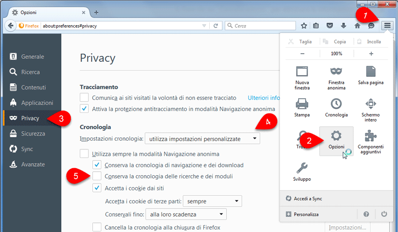 - Deseleziona la voce “Conserva la cronologia delle ricerche e dei moduli“.