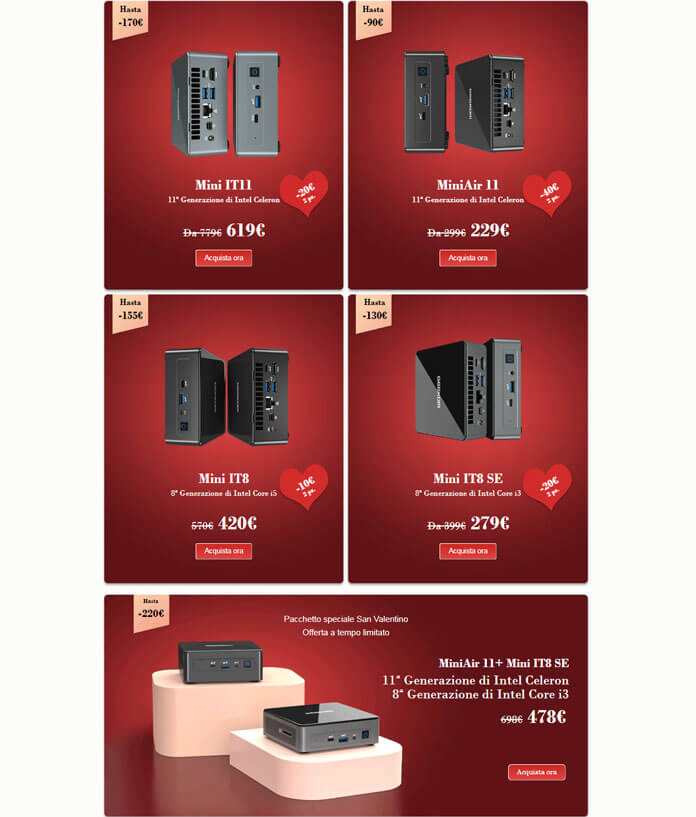 Trovate oltre a quest’offerta, tutti gli altri prodotti in promozione alla pagina che Geekom ha dedicato a San Valentino.
