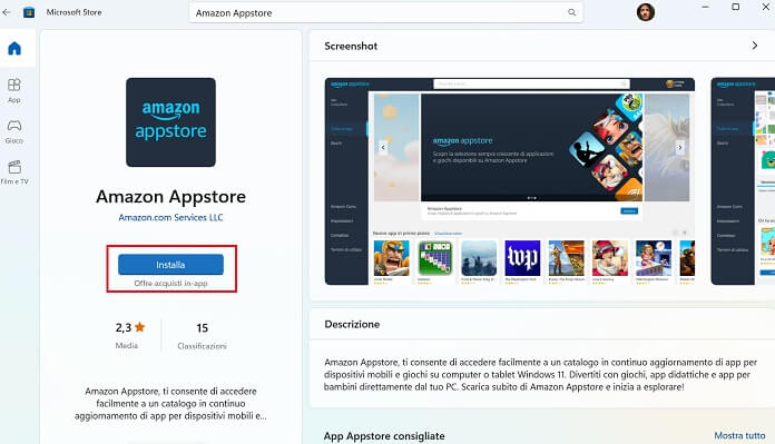 Amazon Appstore è un app store sviluppato da Amazon per i dispositivi Android, i tablet Amazon Fire e i PC con sistema operativo Windows 11. Si installa come una qualsiasi app disponibile nel Microsoft Store, quindi non occorre seguire una procedura complessa, come quella vista ad esempio per installare Google Play Store su Windows 11.