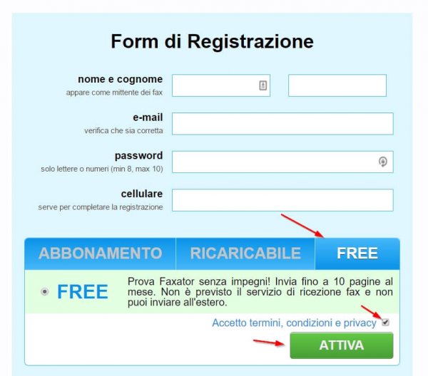 Compila i vari campi per registrare il tuo account e assicurati di premere dove indicato nelle frecce rosse (immagine in basso).