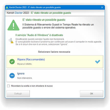 Se il sistema rivela una situazione a rischio, a causa della quale Windows potrebbe andare in crash, Kerish Doctor invia immediatamente una notifica all’utente contenente l’avviso di ciò che sta accadendo.
