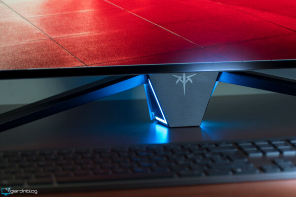 Se scegliamo di acquistare il monitor insieme alla sua base, daremo un tocco decisamente gaming alla design di questo prodotto, grazie ai led RGB in essa integrati, ben calibrati, con una luminosità ne eccessiva e ne troppo leggera, che vedremo riflessa maggiormente sul tavolo e in minor parte sul muro. Tramite il menù OSD del monitor è possibile impostare i led RGB su un colore specifico o sull’effetto “respirazione” che varia gradualmente da una tonalità a un’altra.