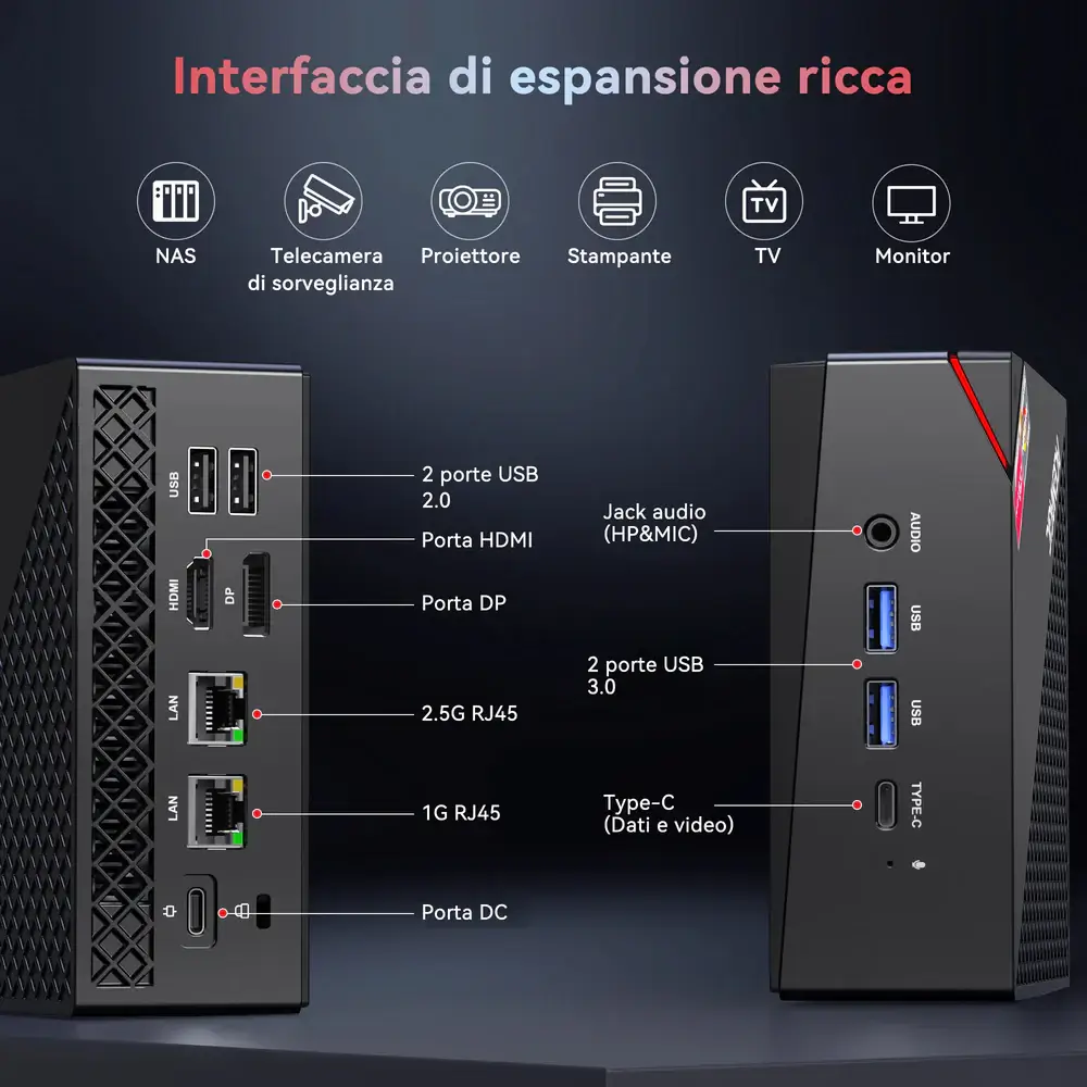 Il principale vantaggio di un mini PC è evidente già al primo sguardo ovvero le dimensioni estremamente ridotte. Un dispositivo di questo tipo può essere posizionato dietro al monitor tramite attacco VESA, collocato su una mensola o integrato in una postazione minimal senza occupare spazio prezioso sulla scrivania. In ambienti domestici sempre più orientati al design e alla funzionalità, questo aspetto fa una differenza concreta. Tuttavia, la compattezza non è l’unico punto di forza.