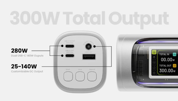 | Porte di uscita | 2× USB-C (PD3.1) da 140W contemporaneamente, 1× USB-A da 30W, 1× uscita DC fino a 140 W |