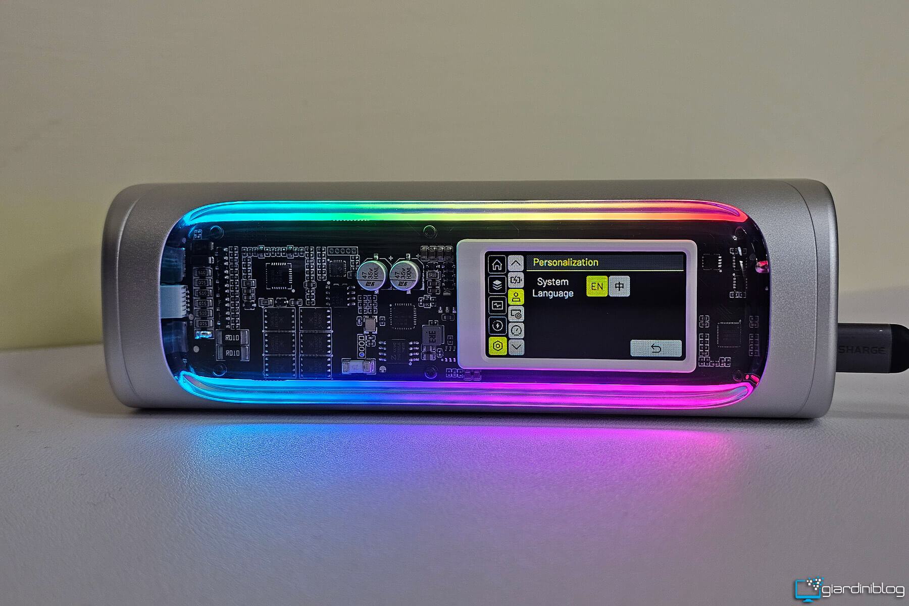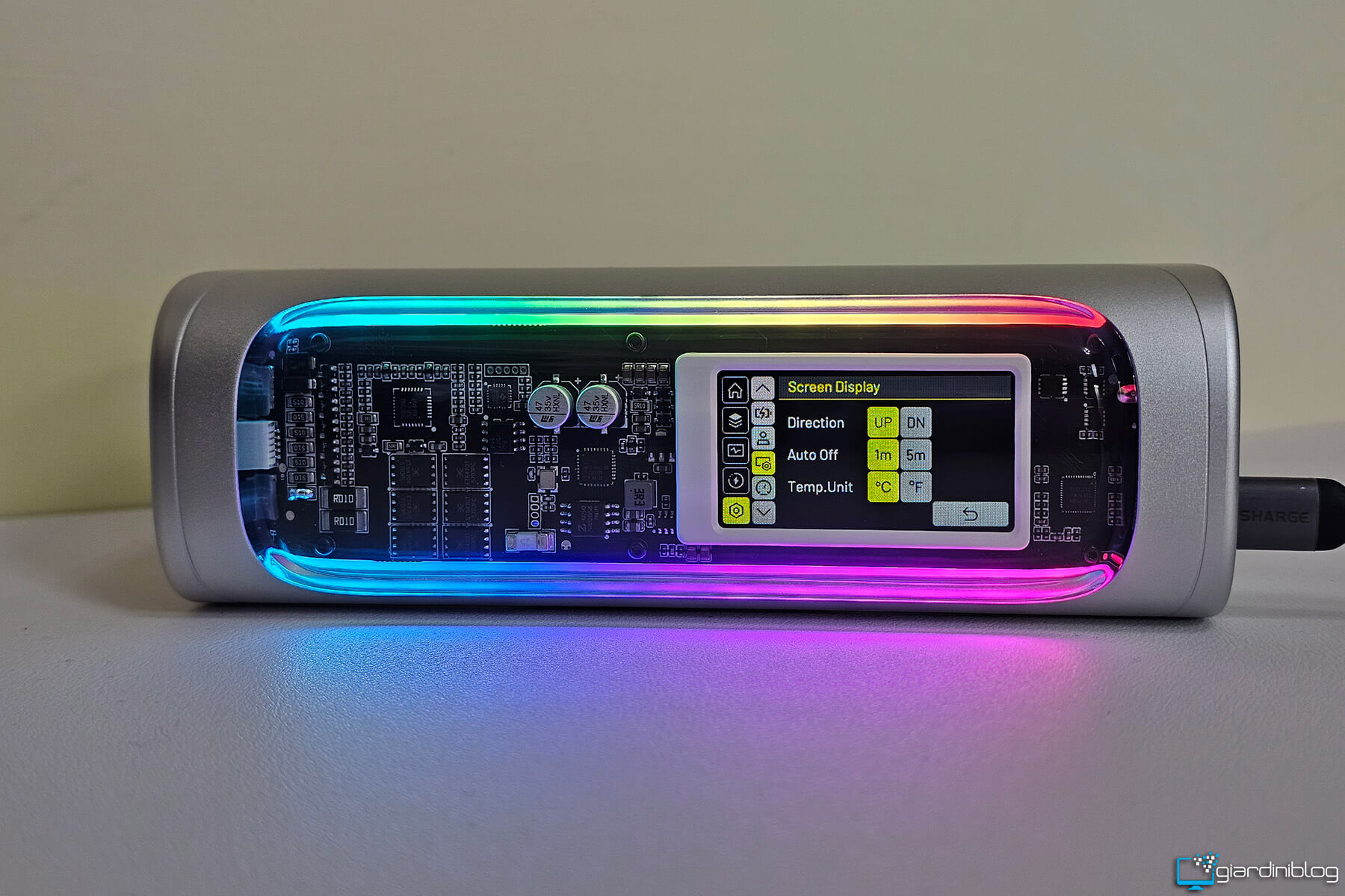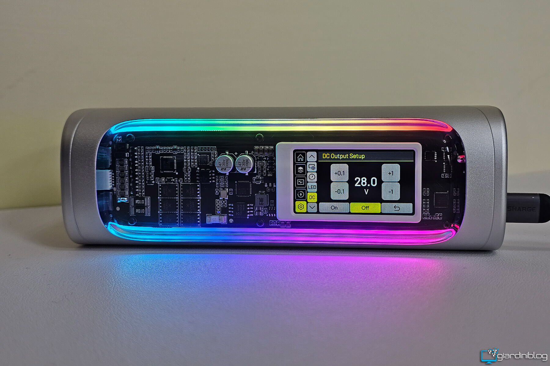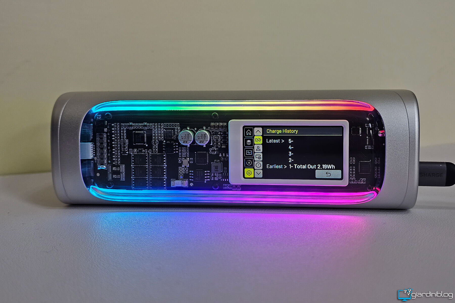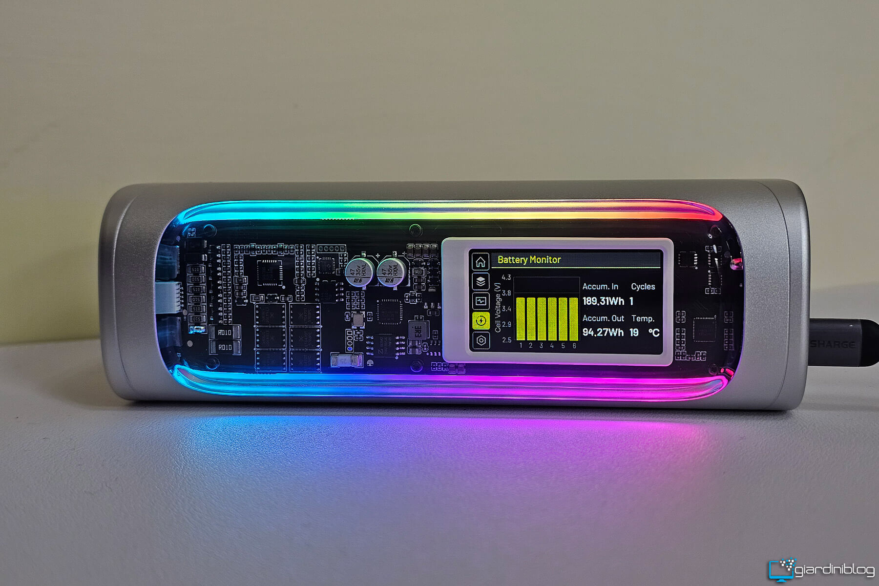 Il display non è un semplice vezzo estetico: sapere, ad esempio, che stai assorbendo 95 W dal tuo notebook o che il powerbank si sta ricaricando a 120 W fa una grande differenza per chi vuole controllo e precisione. L’illuminazione RGB presente è personalizzabile e aggiunge un tocco futuristico, forse superfluo per alcuni, ma coerente con un prodotto che vuole distinguersi anche visivamente.