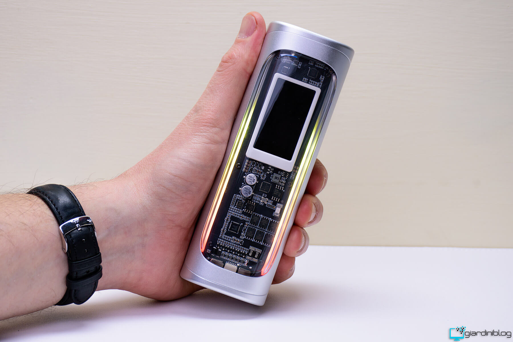 Il design è sicuramente originale e piacevole con i componenti visibili e illuminazione RGB personalizzabile. Non è ancora ufficialmente in vendita nei negozi con un prezzo finale confermato ma è possibile trovarlo su Kickstarter.