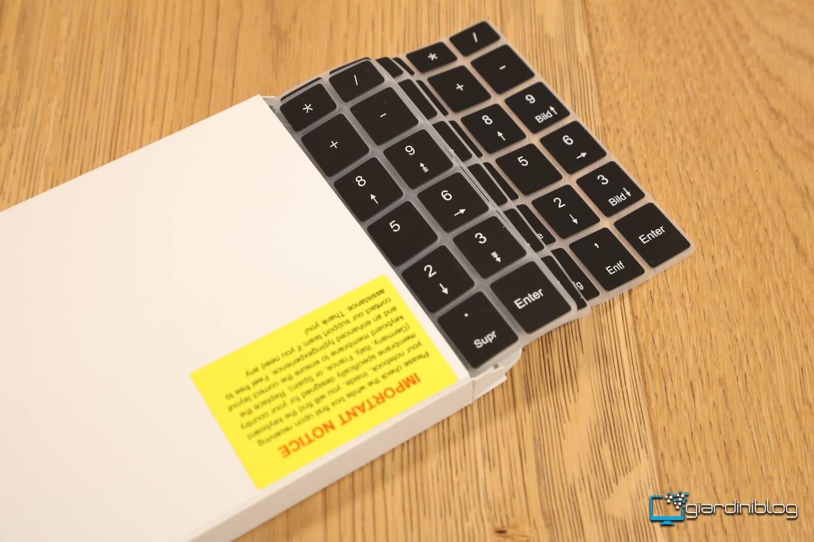 La presenza delle membrane per la tastiera è particolarmente utile: essendo il layout nativo di tipo internazionale, queste coperture permettono di adattare istantaneamente il PC alla lingua italiana. È una soluzione intelligente che garantisce flessibilità per l’utente, un aggiunta significativa per chi lavora con layout spesso diversi e cerca una soluzione pronta all’uso senza dover acquistare altri adesivi esterni.