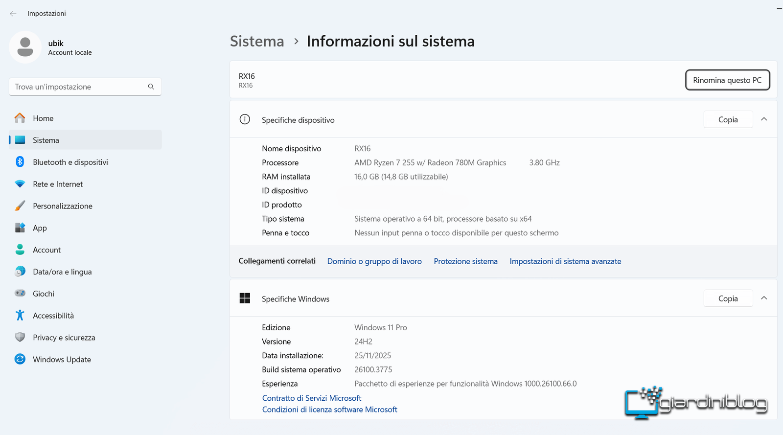 Passiamo ad esaminare attentamente tramite benchmark, come si comporta AceMagic RX16 dal punto di vista delle prestazioni. Nel corso delle prove, li computer portatile si è rivelato capace di soddisfare le aspettative sia in termini di potenza che di versatilità, confermandosi una workstation mobile concreta e scattante. All’avvio, la configurazione di Windows 11 Pro è rapida e, con grande piacere, abbiamo trovato un’installazione estremamente pulita, un dettaglio apprezzabile per chi desidera una macchina subito operativa senza software inutili a pesare sulle risorse.