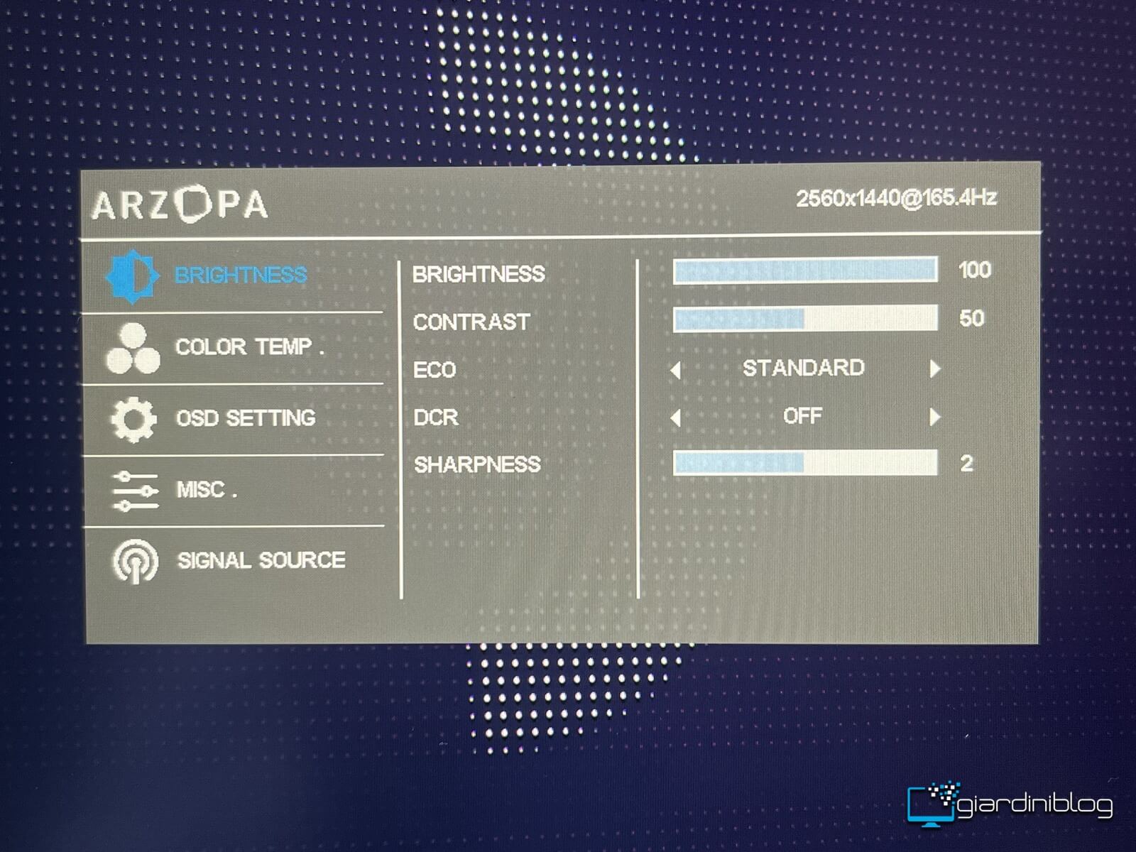 Tramite le voci dedicate è possibile intervenire sulla temperatura colore, scegliere il preset più neutro per il lavoro grafico o uno più caldo per la lettura prolungata, regolare l’intensità della nitidezza e abilitare/disabilitare funzioni come il contrasto dinamico, adattando il pannello ai diversi scenari d’uso senza toccare le impostazioni del sistema operativo.