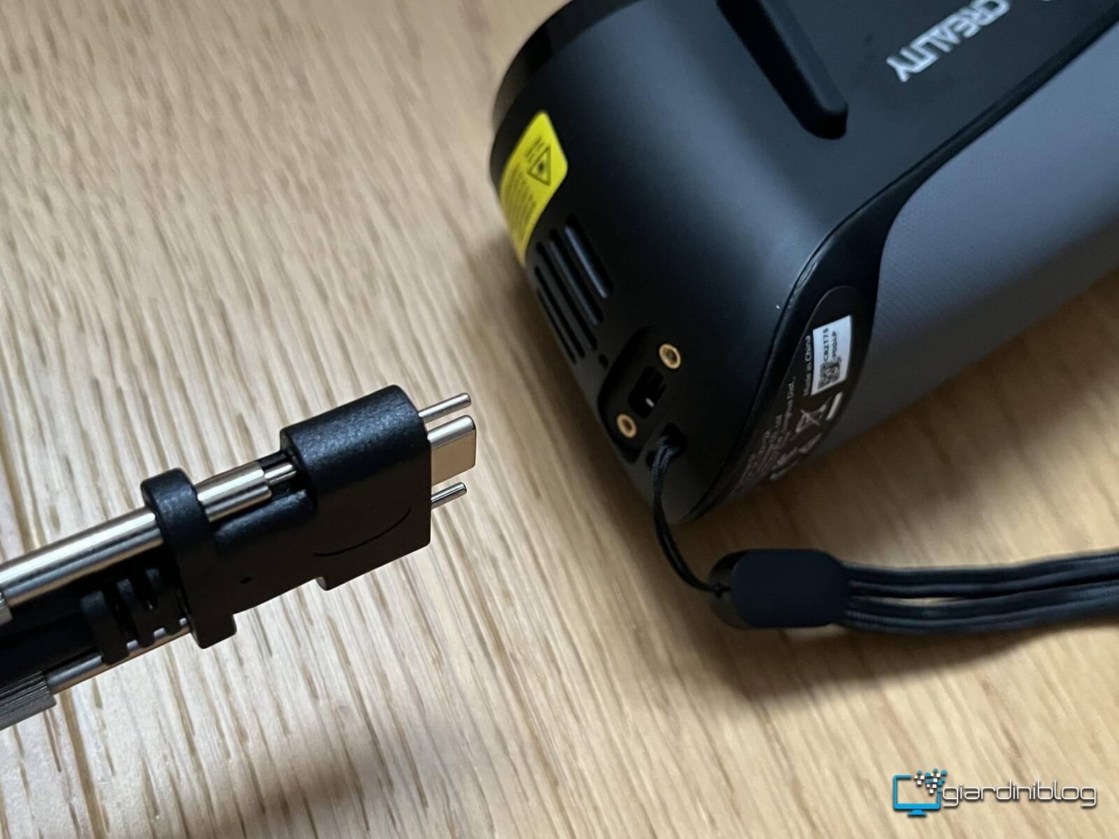 Il setup iniziale si è rivelato molto veloce e intuitivo: lo scanner 3D di Creality si collega semplicemente alla corrente elettrica e poi al computer tramite una porta USB, con possibilità di usare l’adattatore incluso per connessioni Type-C qualora il PC ne sia dotato, semplificando ulteriormente il cablaggio. Il cavo risulta molto lungo, proprio per permetterci di fare delle operazioni di scansione con il PC fisso collegato e senza particolari intralci o problemi.