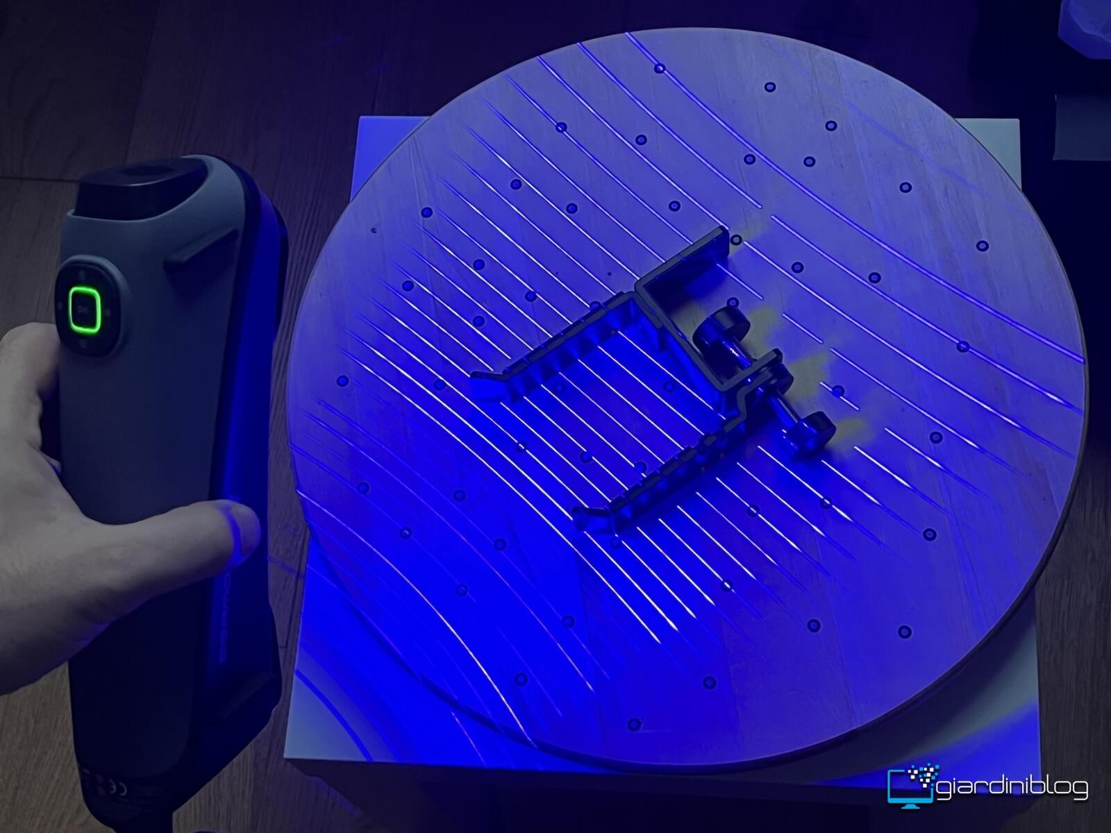 L’utente avvia la scansione dell’oggetto da diversi angoli, muovendo lo scanner 3D o ruotando l’oggetto sul piano rotante – cosa che consigliamo, dopo i primi test fatti sul tavolino – per acquisire nuvole di punti da più prospettive.