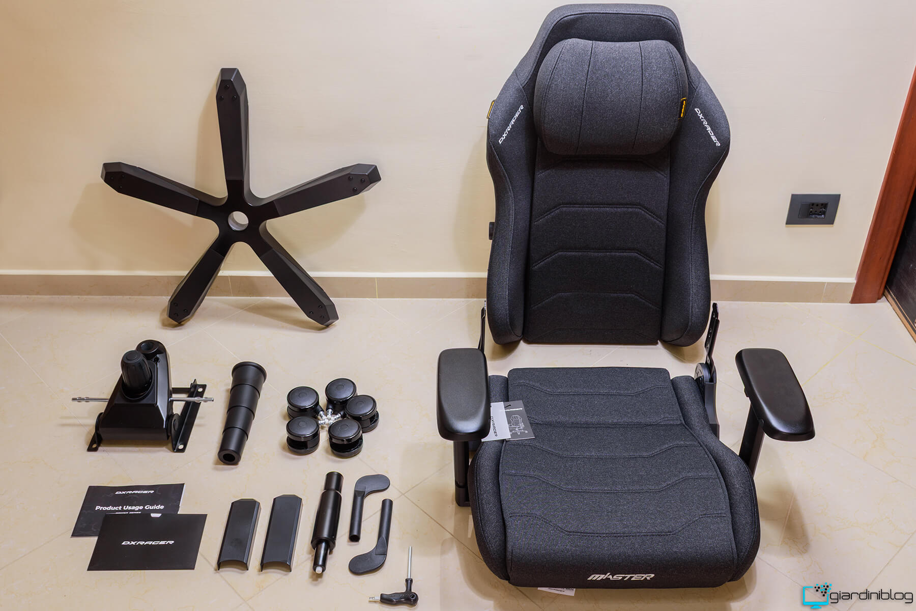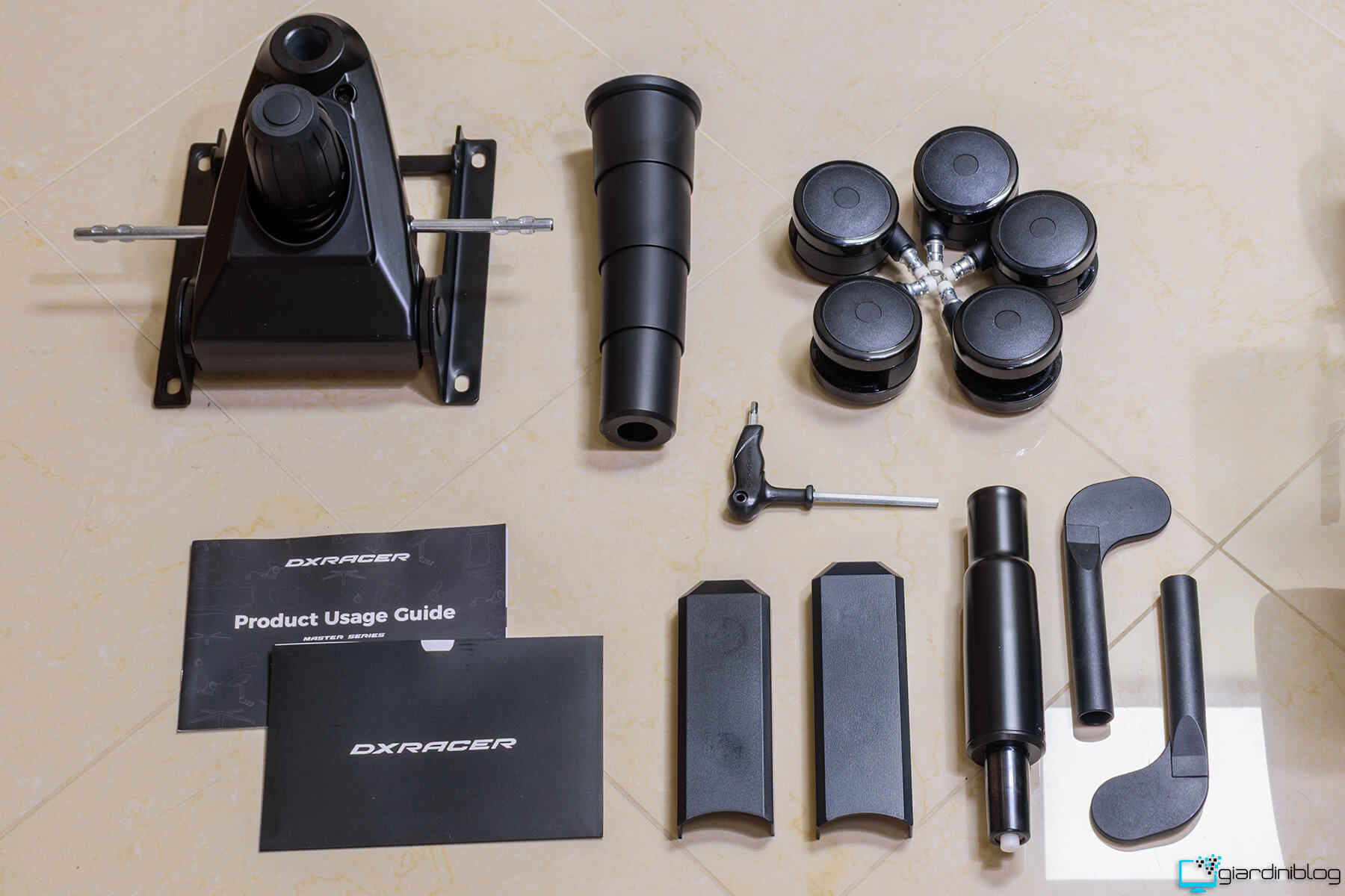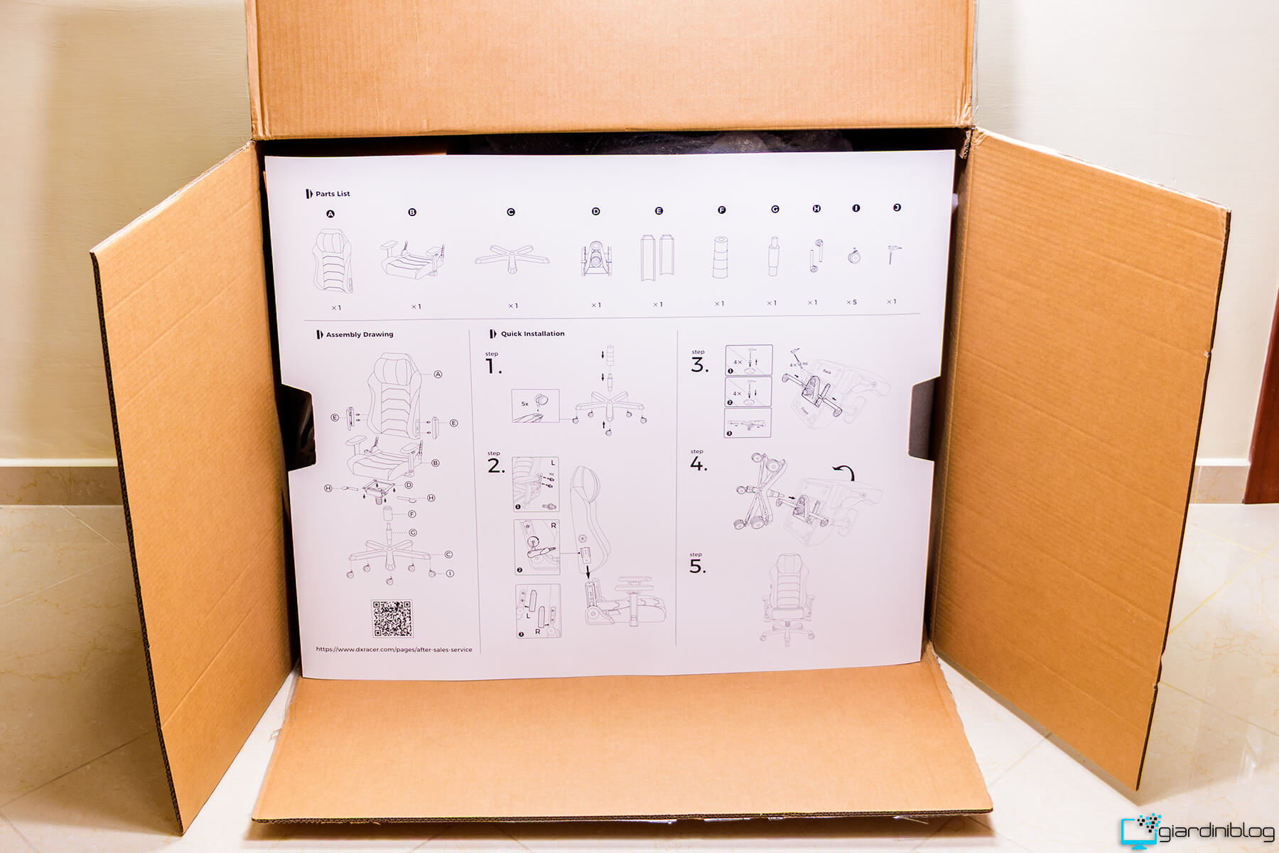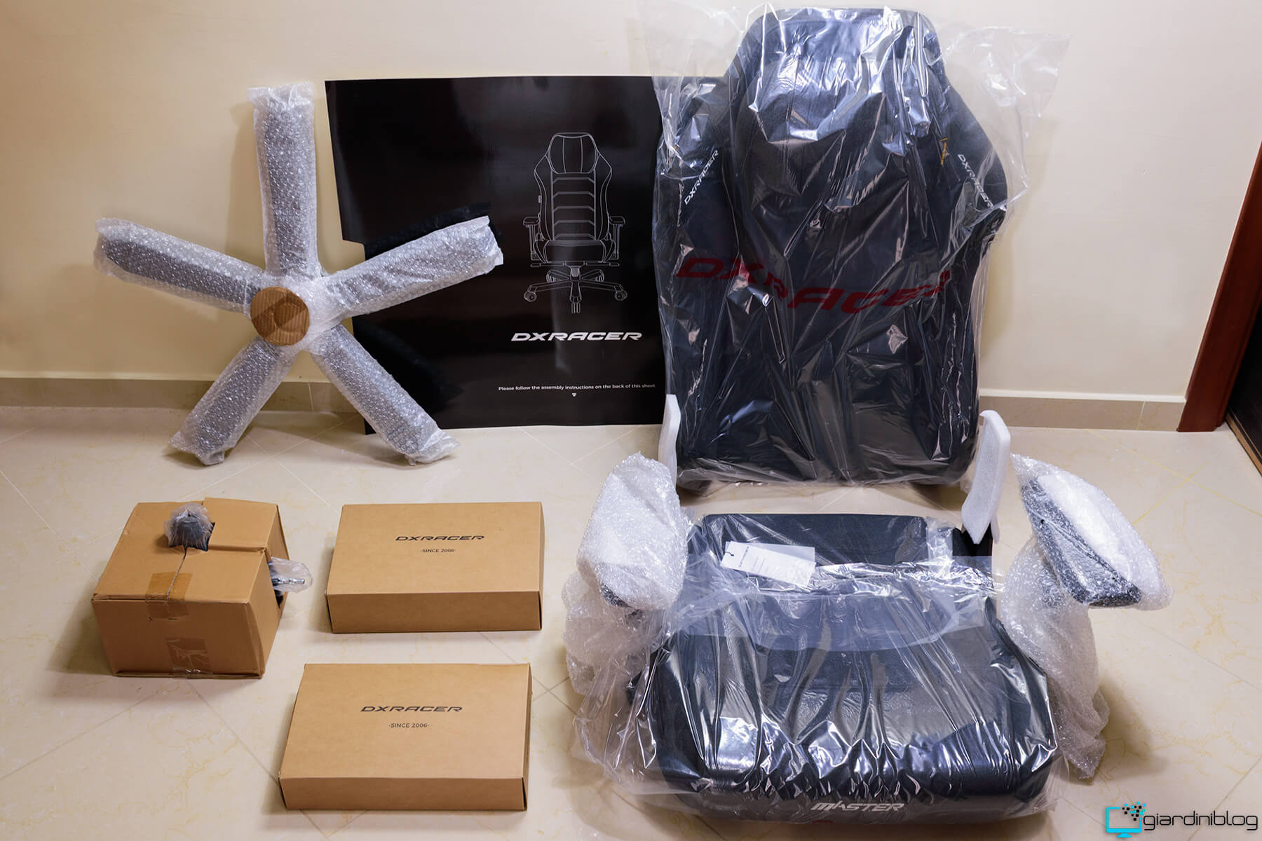 La DXRacer Master arriva in uno scatolo voluminoso dalle misure di 85x72x39 cm e dal peso di ben 35 Kg. Confezione molto curata e ben protetta, alla cui apertura troviamo un poster illustrativo che indica tutte le fasi di assemblaggio, passo per passo.