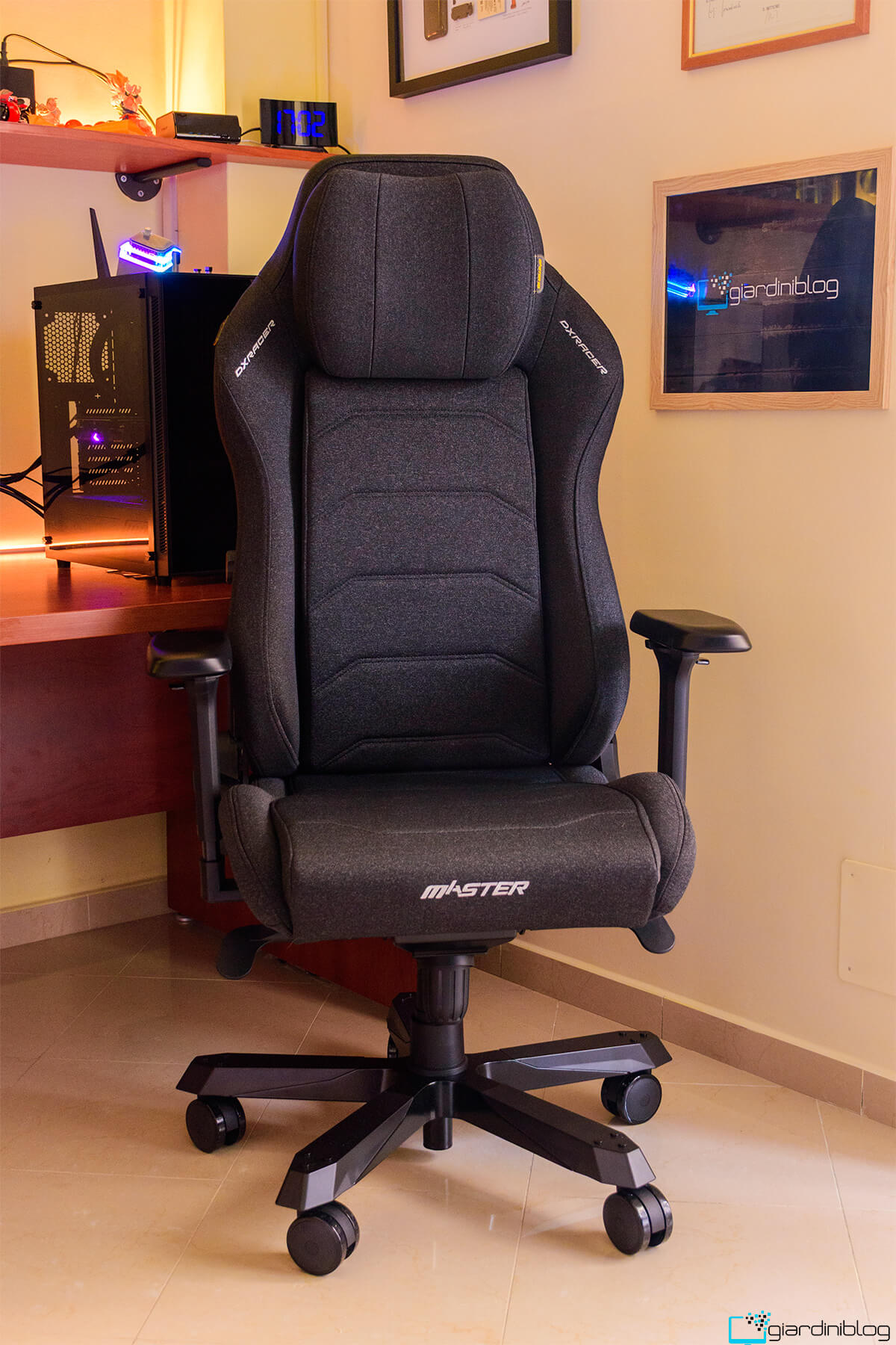 Dal punto di vista del design e della qualità costruttiva, la DXRacer Master da noi scelta con rivestimento in tessuto (esiste anche la versione in similpelle) si colloca chiaramente in una fascia superiore rispetto alla media delle sedie da gaming.
