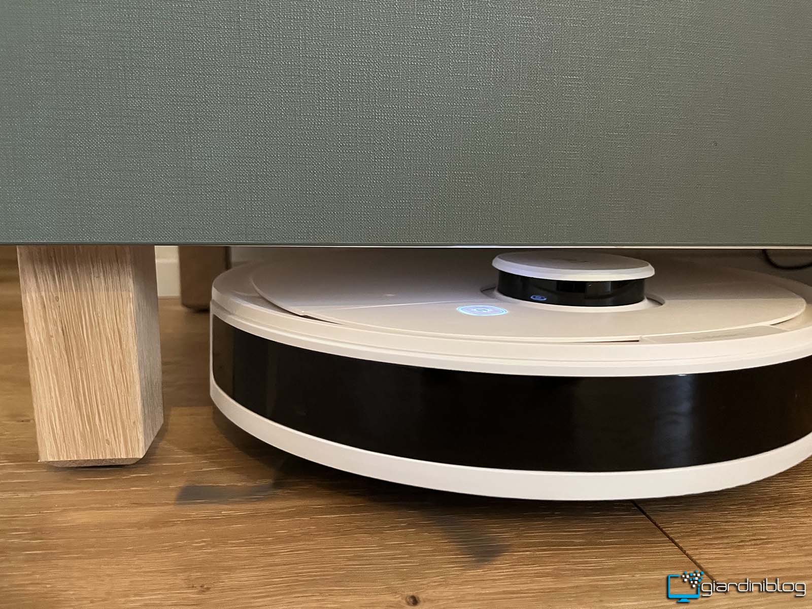 Il robot è riuscito tranquillamente a salire sui tappeti e aumenta la potenza per avere una capacità di aspirazione maggiore. Una volta individuati i tappeti di casa, questi ultimi verranno contrassegnati sulla mappa e ignorati in caso di utilizzo della modalità 2 in 1 lavaggio. In alcune occasioni (vicino ai piedi di uno sgabello), il robot è rimasto incastrato per diverso tempo ma è riuscito a districarsi da solo, senza che dovessimo intervenire.