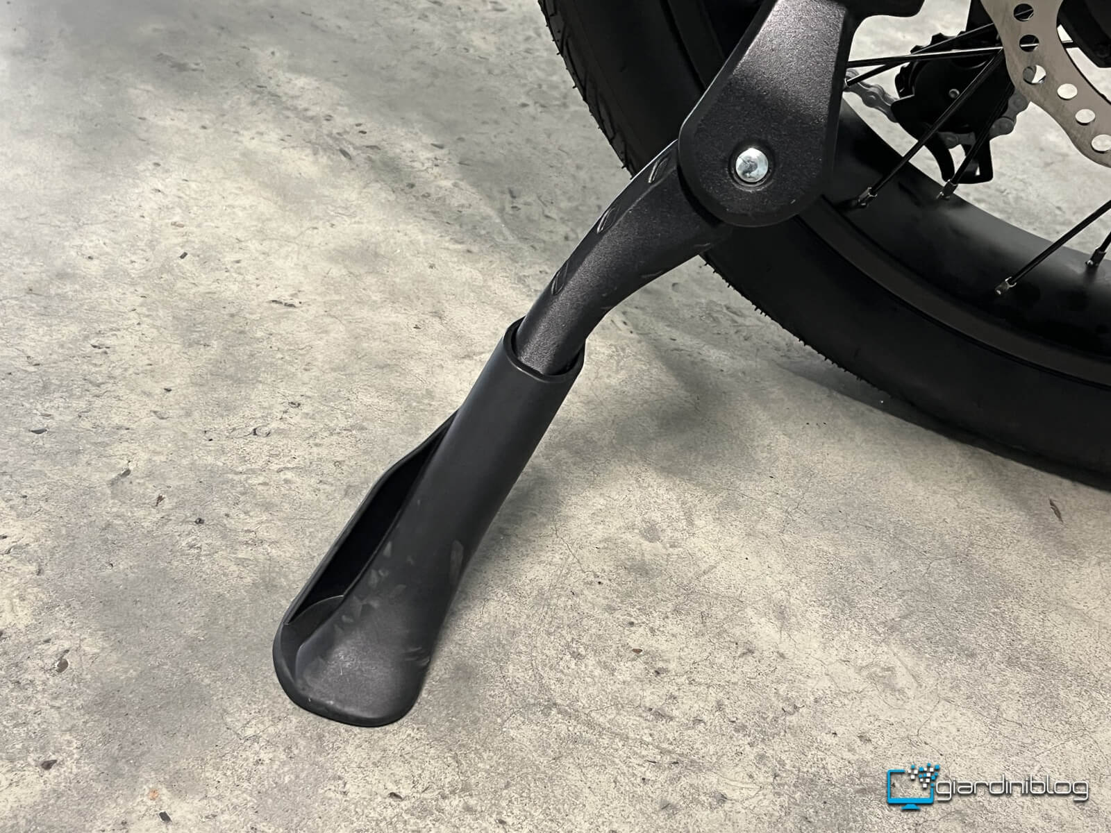 A completare il tutto troviamo i parafanghi in metallo, ben distanti dalla ruota per evitare accumuli di fango ma sufficientemente avvolgenti per proteggere dagli schizzi su asfalto bagnato; la loro struttura solida evita quelle fastidiose vibrazioni tipiche delle alternative in plastica economica. Anche il cavalletto laterale merita una menzione: è robusto, posizionato per non interferire con i pedali durante le manovre da fermo e offre una base d’appoggio parecchio ampia che garantisce stabilità alla bici, prevenendo cadute accidentali su terreni non che non sono perfettamente piani.