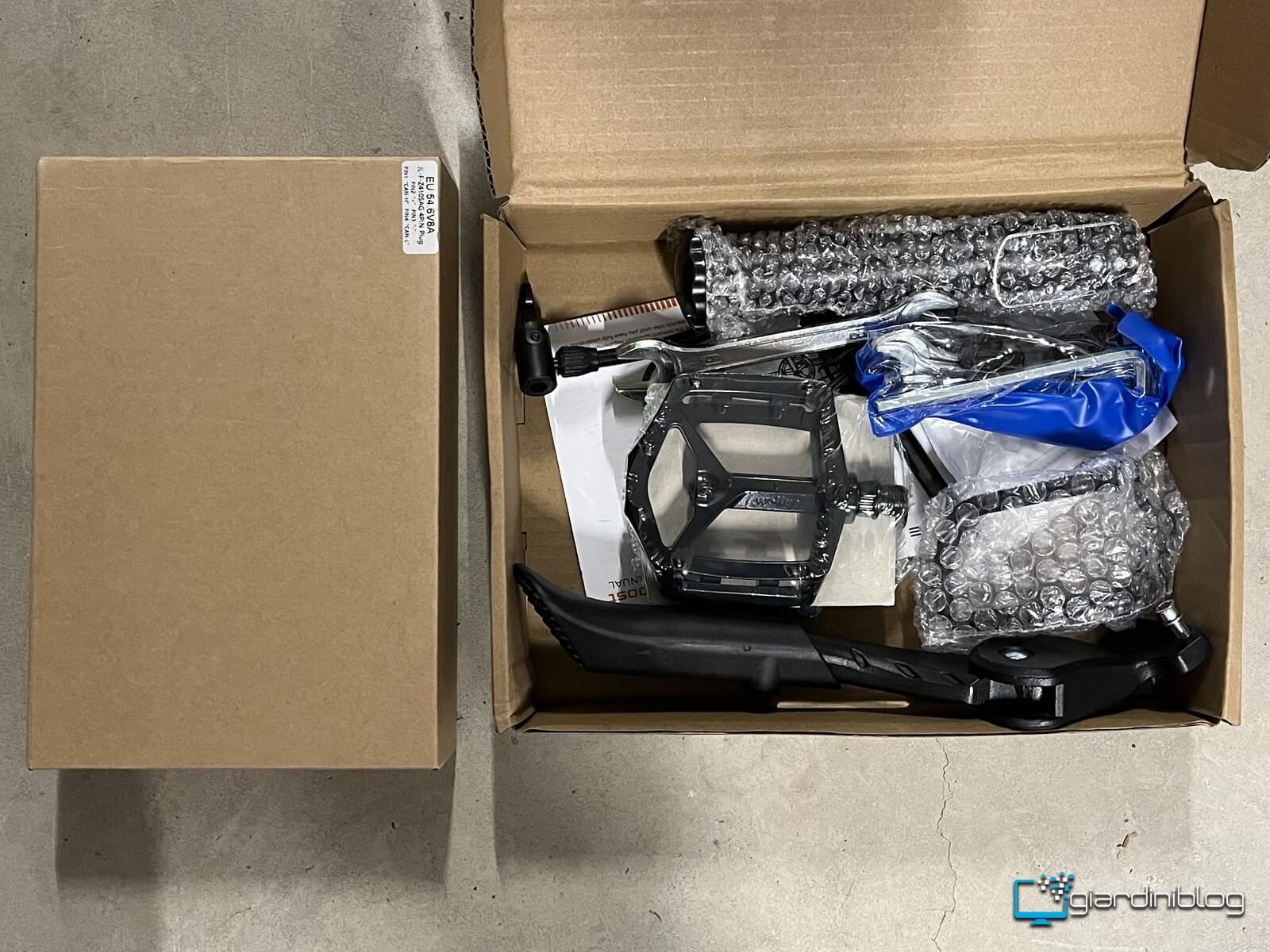 E’ molto consigliato essere in due per la fase di unboxing e montaggio ma non è indispensabile, visto che in fondo la bici arriva assemblata praticamente al 90%, con la ruota anteriore da montare, assieme al parafango, luce anteriore, sella e manubrio.