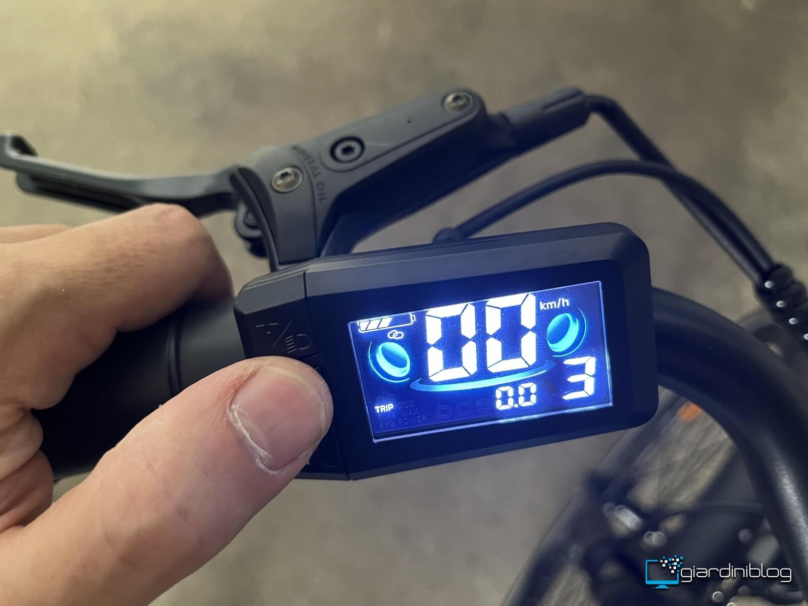 Il display della ENGWE P275 SE si trova sulla sinistra ed è un LCD a colori che mostra informazioni come il livello di carica della batteria, la velocità corrente e il livello di assistenza selezionato. Ha una risoluzione sufficiente a garantire leggibilità ottima anche sotto una forte luce solare mentre i colori, rendono questo display molto più chiaro a livello di interfaccia, ben organizzate e allo stesso tempo intuititivo.