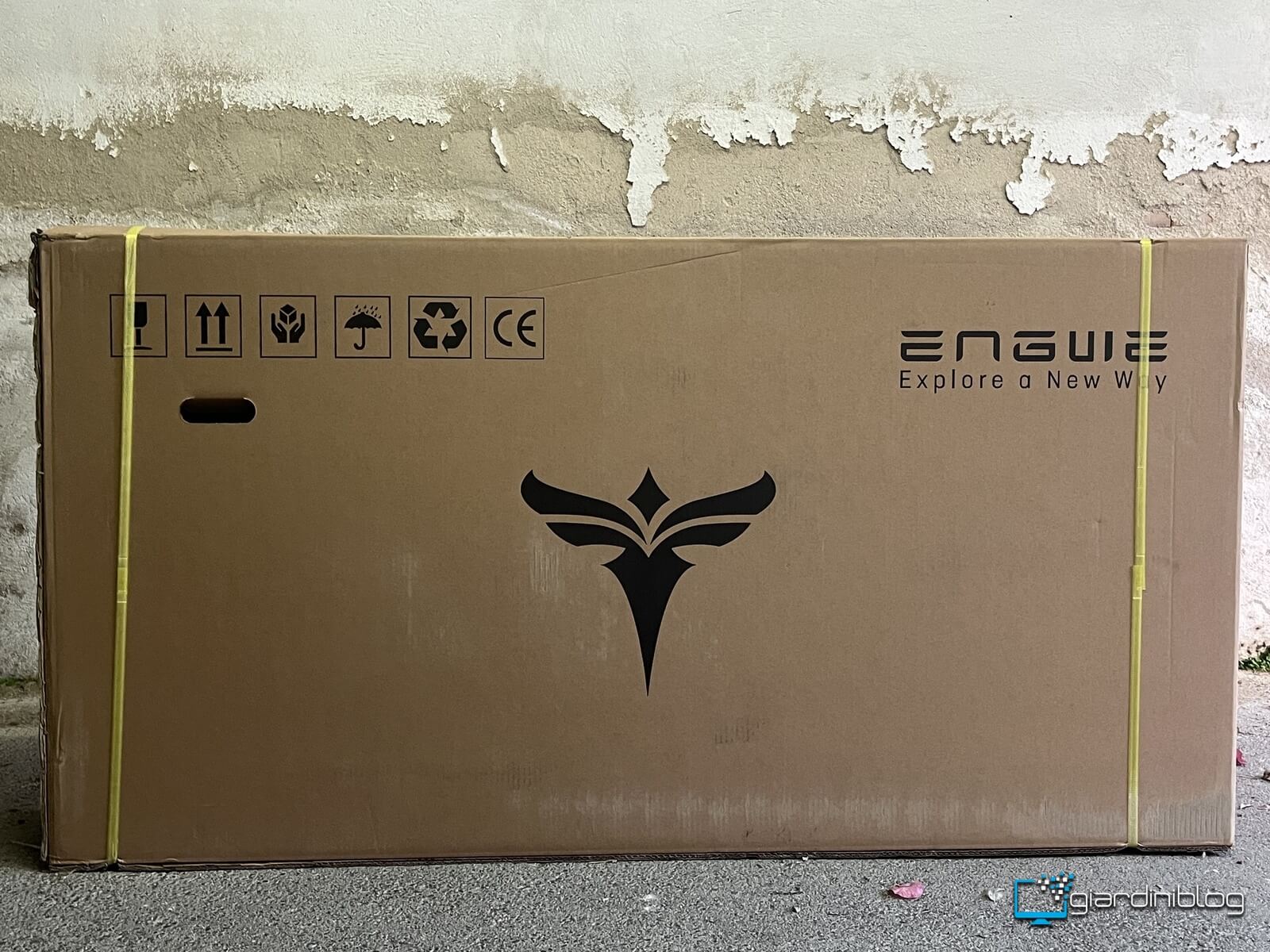 Il pacco arriva ben imbottito e protetto, con dimensioni ragionevoli ma comunque importanti. Il produttore ENGWE ha dimostrato, ancora una volta, grande attenzione nel packaging: durante le nostre verifiche non abbiamo riscontrato alcun danno né tanto meno piccoli graffi sulla struttura. L’imballaggio è robusto, con schiume protettive posizionate in modo adeguato.