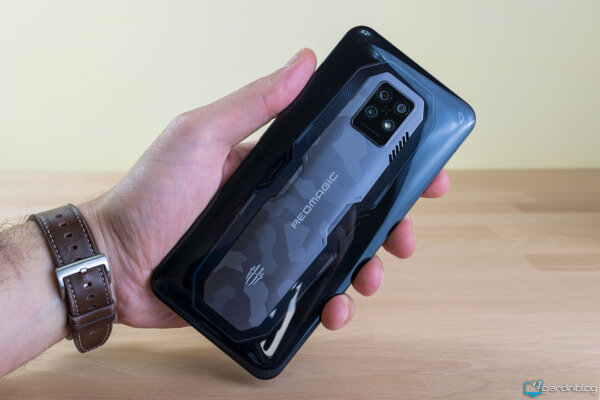 Il Red Magic 7S PRO ha una struttura solida e robusta, caratterizzata da un telaio centrale in alluminio aeronautico e una parte anteriore in vetro, mentre la parte posteriore è costituita da entrambi i materiali.