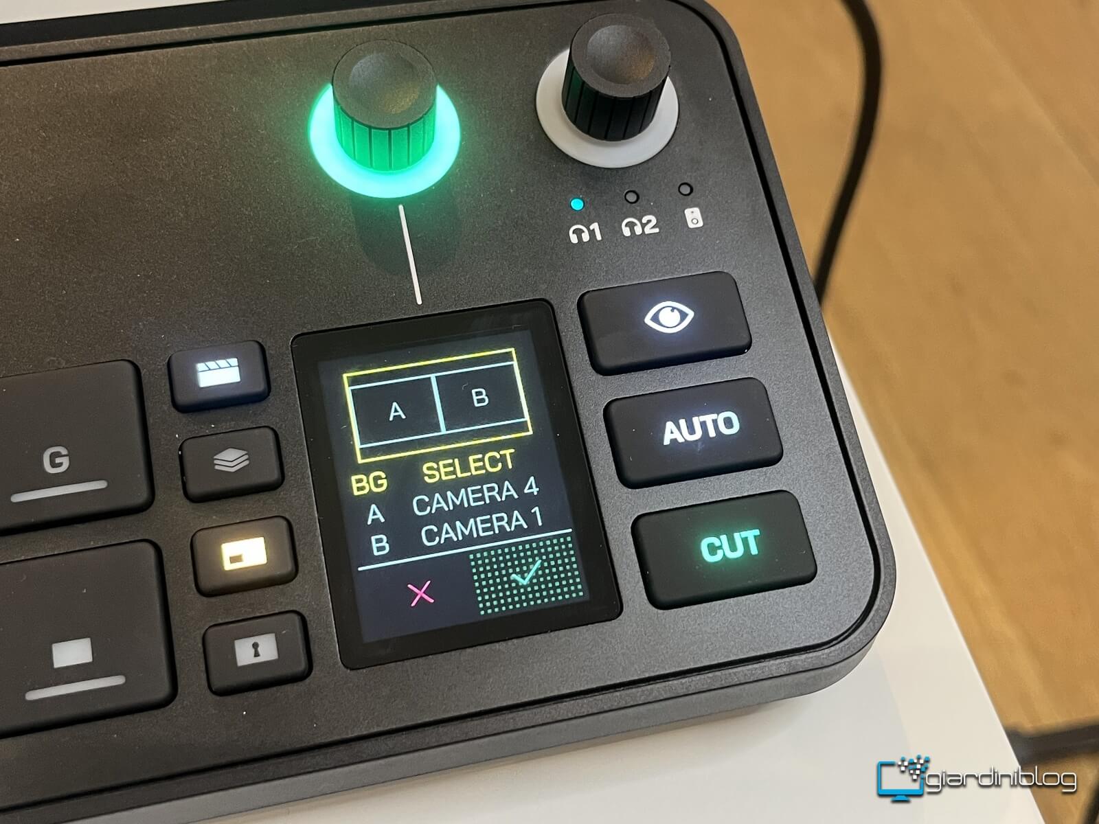 Le operazioni comuni come cambiare scena, regolare volume, passare tra input, attivare effetti, risultano intuitive e semplici. L’Inspect (quello con l’occhio) è particolarmente utile perché permette di visualizzare sullo schermo qualsiasi input o scena senza interrompere l’output in diretta, ideale per verificare setup, regolare telecamere e testare sapendo esattamente come sono configurate le cose.