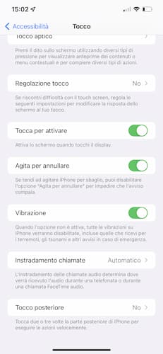 - Nella nuova schermata che si apre scorri in basso e seleziona la funzione “Tocco posteriore“