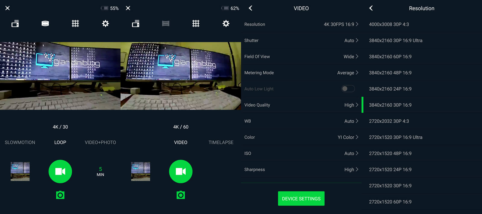 Video: Iniziamo con il dire che i video vengono codificati con il codec H.264 in formato mp4. Un vero peccato che non si sia utilizzato il codec più performante e recente H.265 (HEVC). Forse per questo motivo, la Yi 4K plus gira filmati in slow motion a una risoluzione più bassa rispetto a Gopro Hero 6, ovvero 720p a 240 frame per secondo, invece che 1080p sempre a 240 fps.